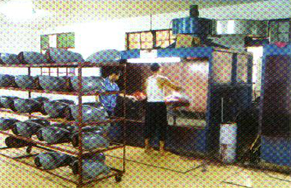 摩托车油箱是用薄钢板冲压滚焊制成的。